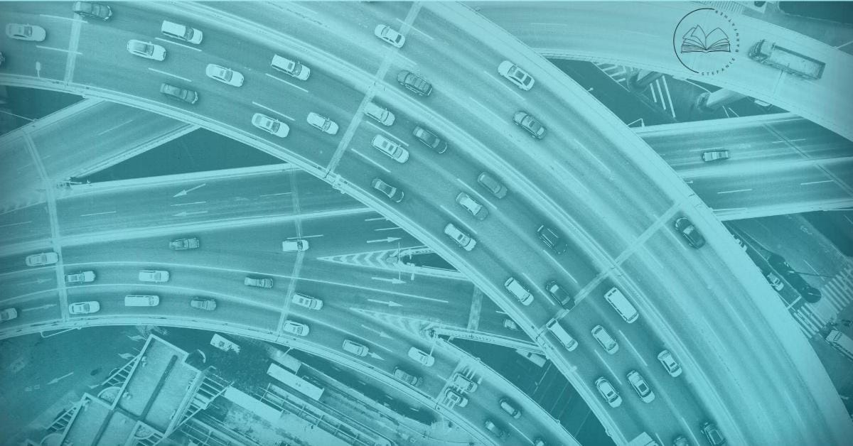 THERE’S NO ROOM to move, but everyone keeps driving. After we steered into the skid and embraced the holistically vehicular life, humanity got what it wanted. We became a societal pendulum and the new world swung between what we feared and what we needed. Tight proximity. Total connectivity. Technology that fused us together. Permanent, inflexible, unchanging. Squished. Cramped. Close. MY FAMILY WAS one of the first to join the Cargo Movement. We migrated, transferring into our truck and taking to the road as the government bulldozed our home to make way for the interconnected transcontinental roadway system. My grandmother was one of the architects who designed the ocean’s pavement pathways. Her name is synonymous with modern development. Our brand is associated with royalty. I am a Prince. I can’t breathe. MY CAR IS small, like most of them are these days. Not like when I was young and our truck fit all five of my family members and our belongings with space to spare. When I got my graduated licence at fourteen, chose my driving co-pilot, then moved out and into my own home—my own vehicle, my own car—the government had already passed regulation that wouldn’t allow vehicles larger than two-seaters to be manufactured. “Better for the environment,” they said. “Easier on the wallet,” was the claim. “Nobody wants compartmentalized separation, anyway. We want vehicles to drive side by side. We want vehicles so there’s no privacy, no primacy, no personality—so there’s no point in us creating larger units anymore. Larger units are a thing of the past. A troubled past, and one that we are driving further and further away from, thanks to people like your grandmother. So, our apologies, your majesty, but what you want is no longer possible.” WHAT ENVIRONMENT? I said. Nature had been paved over to put up paradise. Greenery wasn’t necessary or viable. All production had been moved underground. All manufacturing had been moved underground. All cultivation had been moved underground. The surface was for driving. The environment was rock and stone and signage and traffic lights. WHAT WALLETS? I said. Currency was obsolete. Everything we needed—from tire repair and charging stations to nutrient rations and driving equipment—was provided. We have no wallets, because we have no money, because there’s nothing we need to beg for. The government provides. Now, we travel, we’re united, we belong, we’re taken care of. It works. NOBODY WANTS SEPARATION, I thought, alone in my two-seater with my driving partner. After two hundred years of endemic, pandemic, and epidemic isolation, humanity rejected rejection and shifted to a we-are-one model of interaction. Without homes or offices or theatres, stadiums, playgrounds, arenas—with nothing but cars—we became surrounded by an ever-travelling community of humans that coexisted on our global roads. Always moving forward as one, passing new caravans every day, our soul-spouse in the passenger seat, the electric systems in our vehicles taking us to our predetermined destinations, the landscape a solid sea of black-cracked concrete and sun-bleached road bumpers with metal grates to break up the monotony of our existential expressway of ennui and—